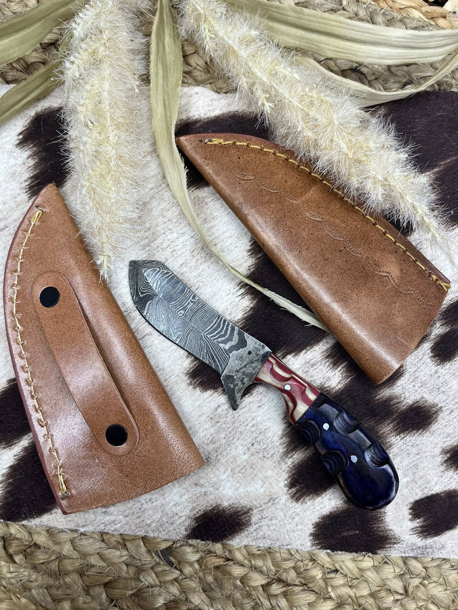 Small Knife Red & Blue Block Handle