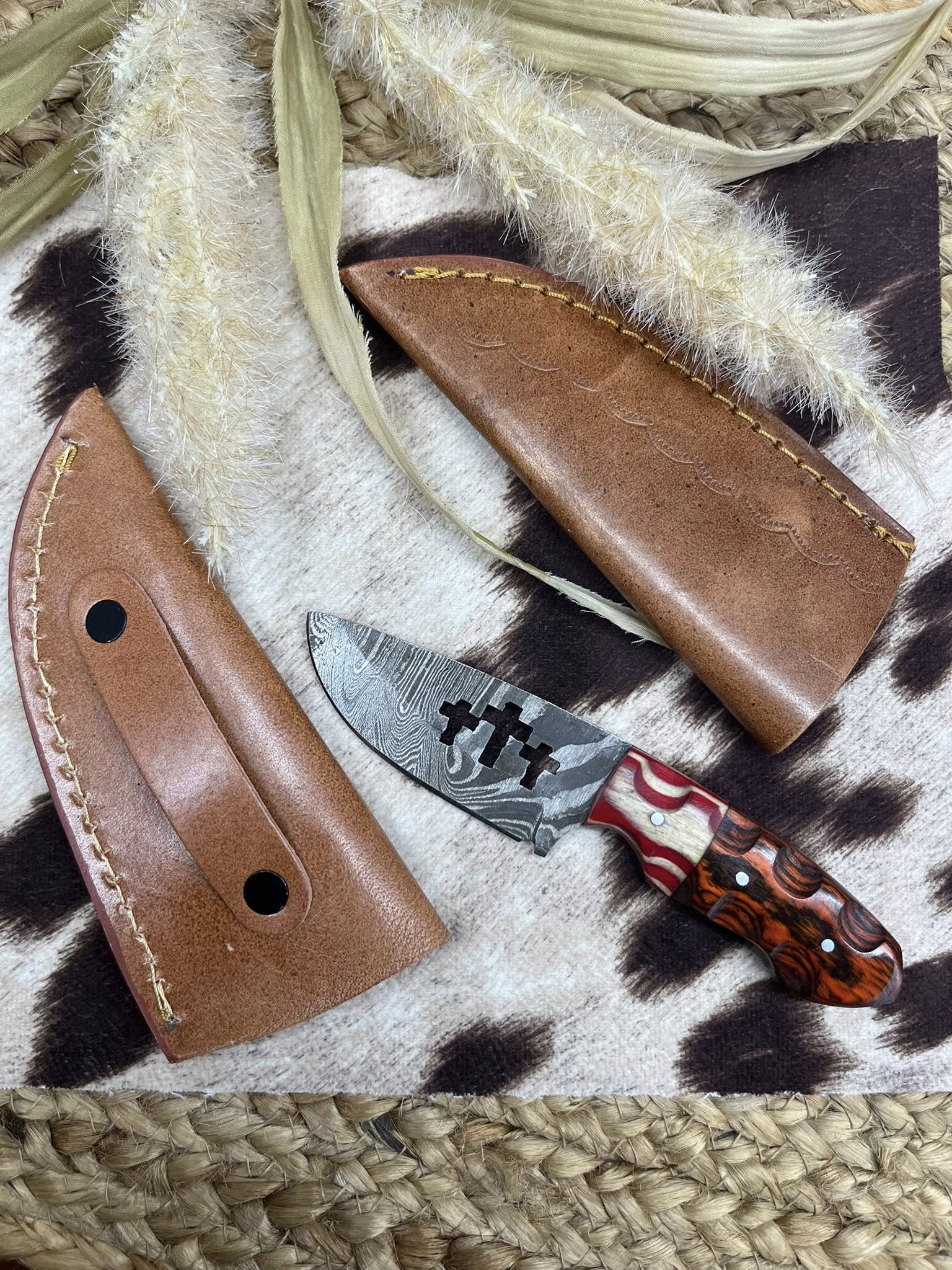 This charming 6" knife features three crosses artfully cut out of the blade, adding a unique touch to its sharp design. The wood block handle fits comfortably in your hand, making every slice feel purposeful. Perfect for those who appreciate a playful twist on a classic tool!